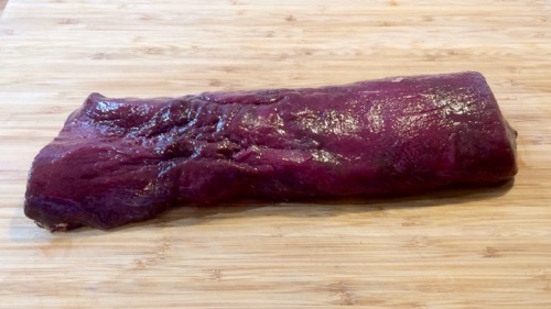 Bak het vlees ongeveer 3 minuten aan beide zijden aan. Let er op dat je het vlees niet te lang bakt, hertfilet wordt rood/roze gegeten.