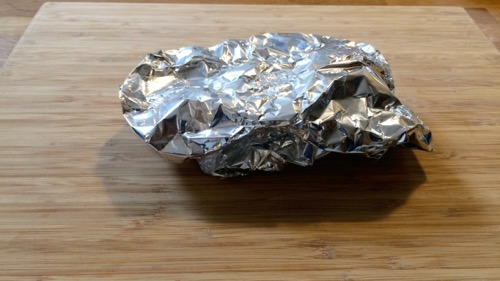 Leg het vlees in zilverpapier om te laten “ rusten “.