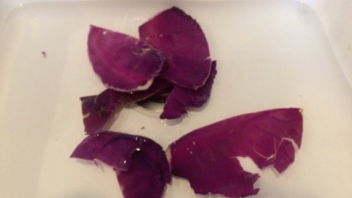 Giet een geut azijn bij het kokend water, je zult zien dat de rode kool een mooie kleur krijgt.